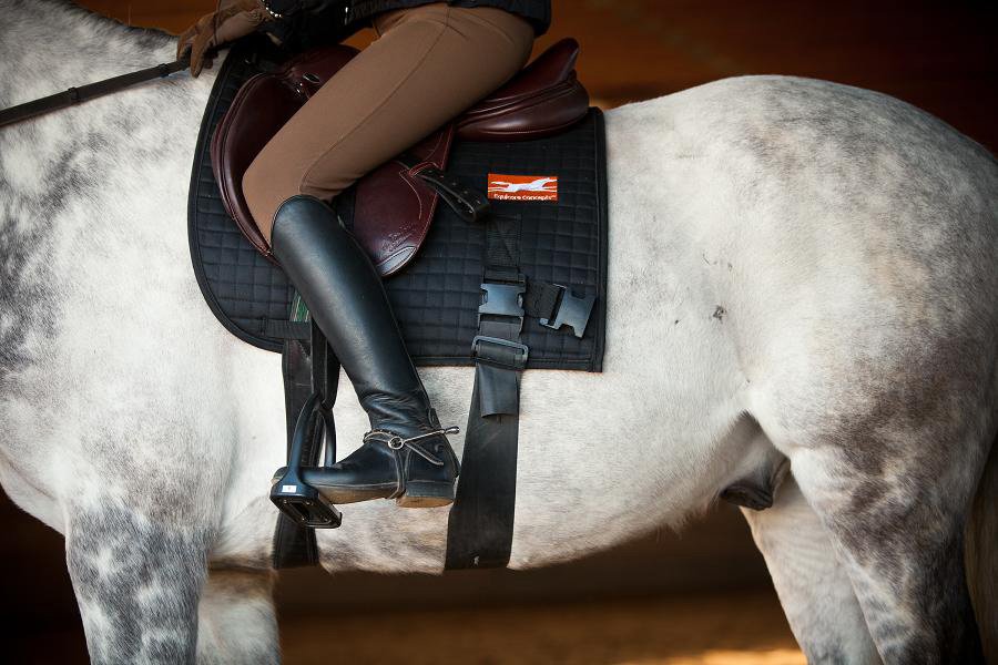 The Equiband Pro System is a specifically designed saddle pad with strategically placed resistance bands that stimulate receptors in the horse’s skin and hair follicles. In response to this stimulation, the abdominal, oblique, sublumbar and deep neck and back muscles are activated. These muscles stabilize the spine, and engage the hindquarters during movement.Use of the Equiband Pro System in rehab work, strengthens the core musculature of the horse, making it easier for the horse to work with optimal posture and engagement.
